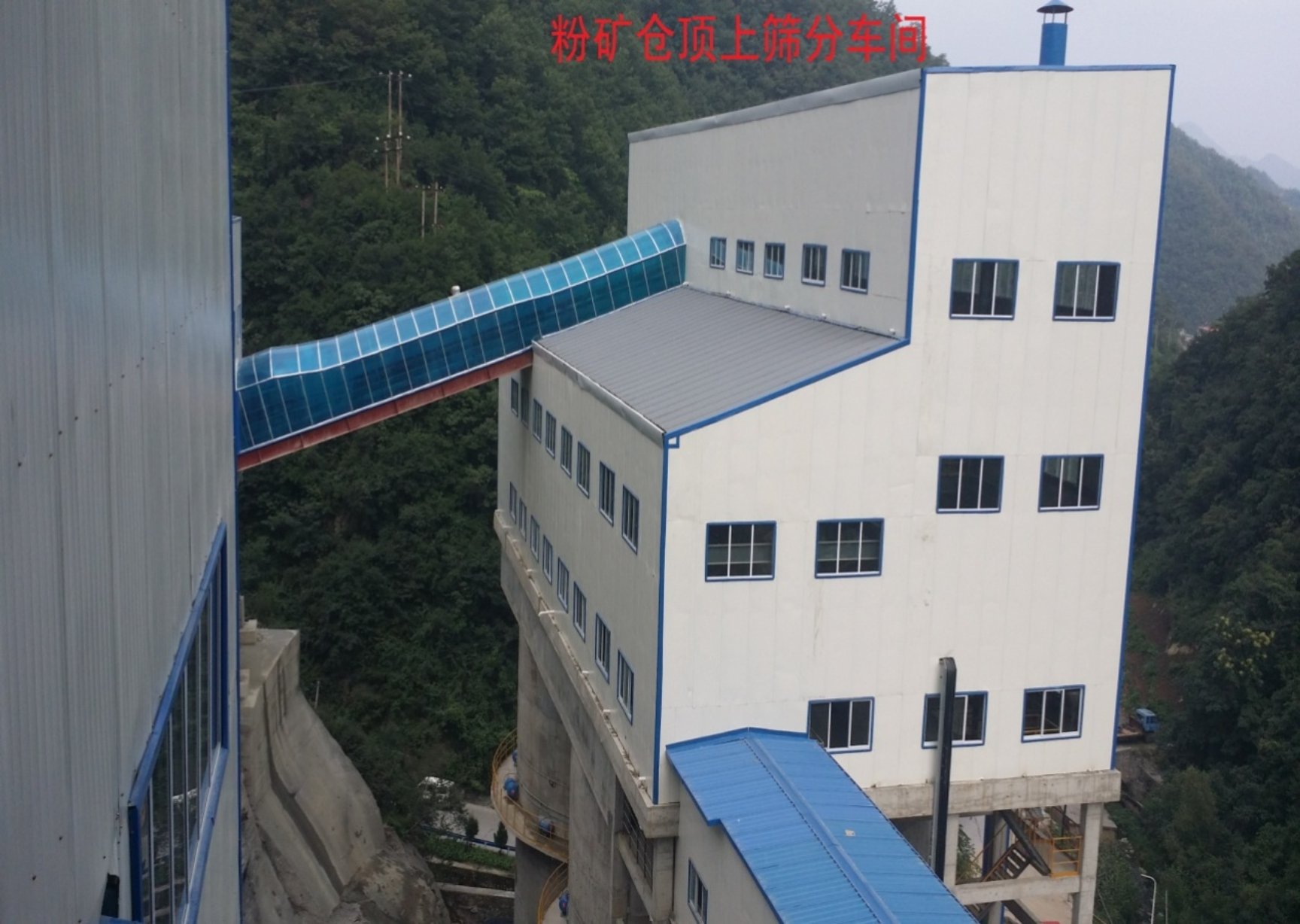 筛分车间布置在粉矿仓顶,筛下物料直接入仓,减少输送环节,节约用地;