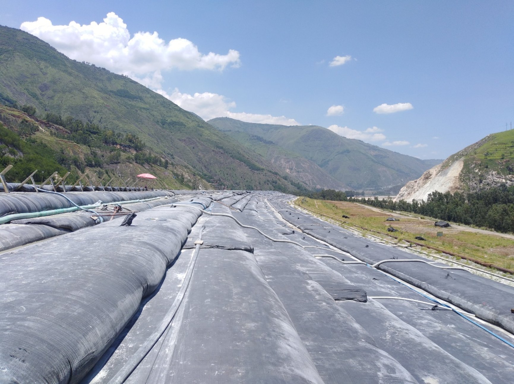 汤丹尾矿库设计总坝高37m,总库容687.45万m³。其中模袋法堆坝设计坝高14m,新增总库容274.35万m³。该项目为继《云南思茅山水铜业有限公司大平掌尾矿库安全措施工程总承包项目》之后,我公司承担的又一以模袋法堆坝技术为主的EPC工程总承包项目。