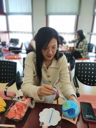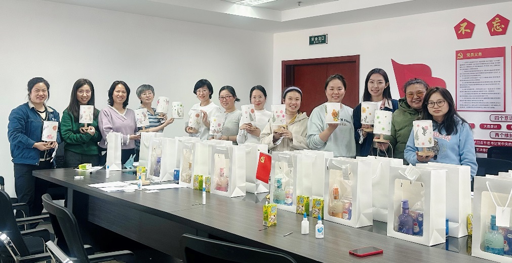 4.资源所举办“花团锦簇迎华诞 巾帼光彩耀矿冶”压花台灯制作活动