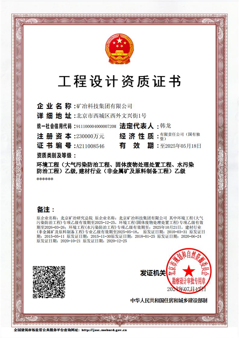 • 环境工程设计认定资格证书